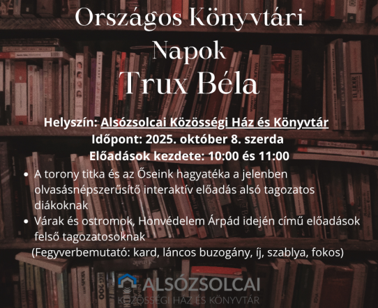 Országos Könyvtári Napok: Trux Béla előadása Posted on 2025-09-252025-09-25 by Tardi Mónika Read More