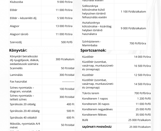 2026. évi szolgáltatási árlista: